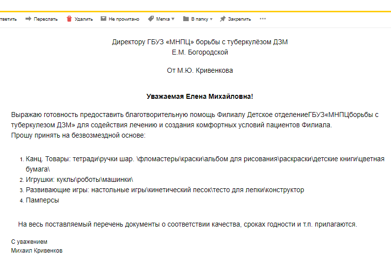 Подарки детям, больным туберкулёзом